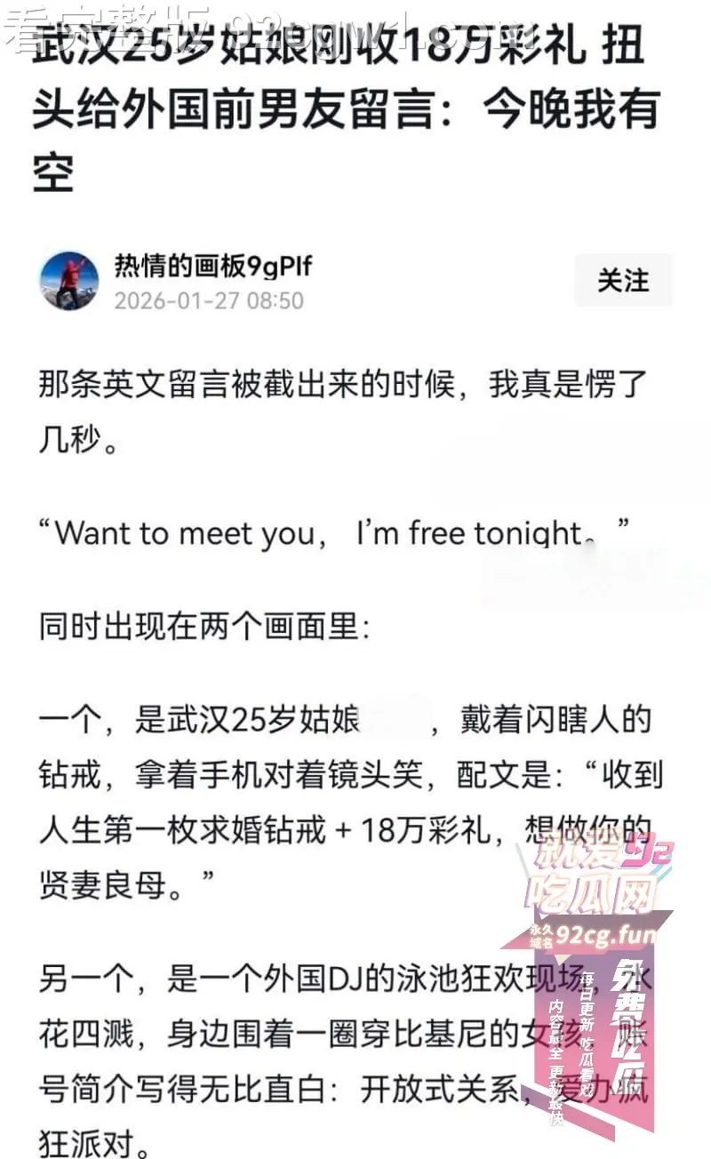 92 吃瓜网最新地址 (免翻墙): https://92cgw1.com