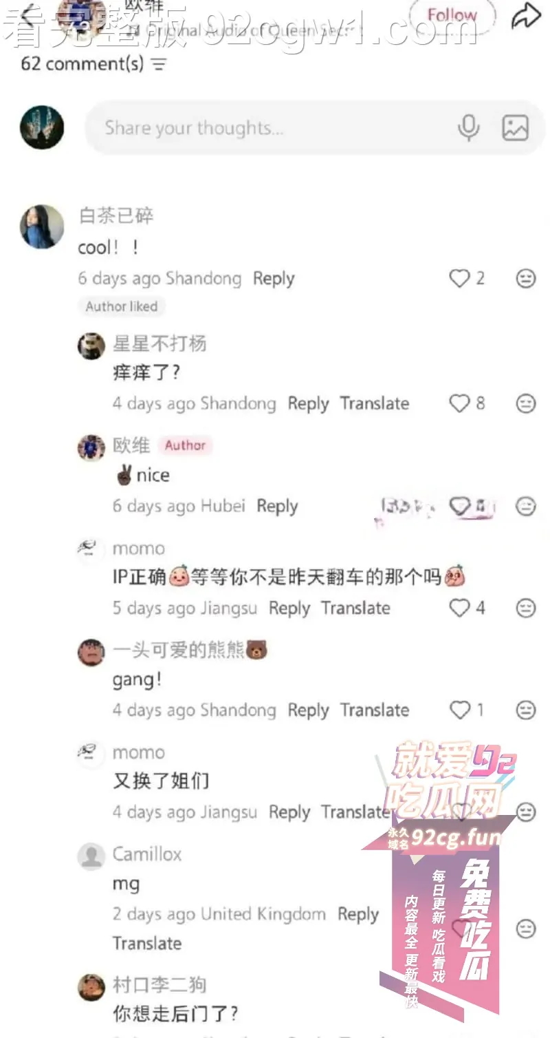 🌟温馨提示🌟 请广大瓜友复制保存官方地址,牢记并添加收藏夹,谨防假冒,92 吃瓜随时欢迎您回家!92 吃瓜网海外永久地址 (永不迷路): https://92cg.fun
