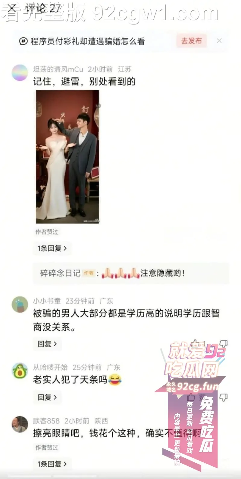 不知,你是否还记得,之前爆火的“张家界新娘结婚前夜多P事件”,本事件可以说是“订婚版张家界新娘”。区别就是,一个是刚订婚收完彩礼,一个是第二天结婚马上举办婚礼,一个是约的时候被发现了约P未遂,一个是约完后被发现了约P既遂,现在网上还有视频。但本质上,都是一样的,那就是水性杨花,明目张胆的背叛婚姻,侮辱性极强,杀人诛心。